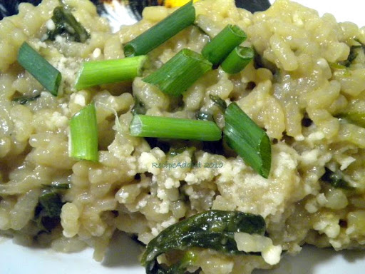 Keep doing this for 14 minutes longer. Add just enough hot chicken stock each time to keep the rice from sticking. Slowly, the rice will become creamy.