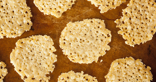 Remove the crisps from the parchment paper using a metal spatula. Serve immediately, or store between sheets of wax paper in an airtight container at room temperature.
