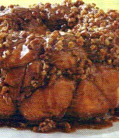 For caramel, bring brown sugar, butter and cream to a boil. Cook and stir for 3 minutes.