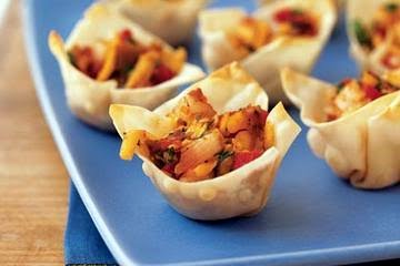 To make cups, gently press bread slices into two inch muffin cups. To keep from making holes, press from edges of bread, not the center.