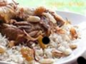 7)Sprinkle the top with kashna(Almond & Sultanas Sprinkle),& Serve Mofatah with buttermilk & green salad.