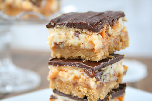 Recipes Notes: If you leave the bars in the refrigerator longer than 10 minutes after you've topped it with chocolate, cutting into the bars might be more difficult and the chocolate is more likely to crack.