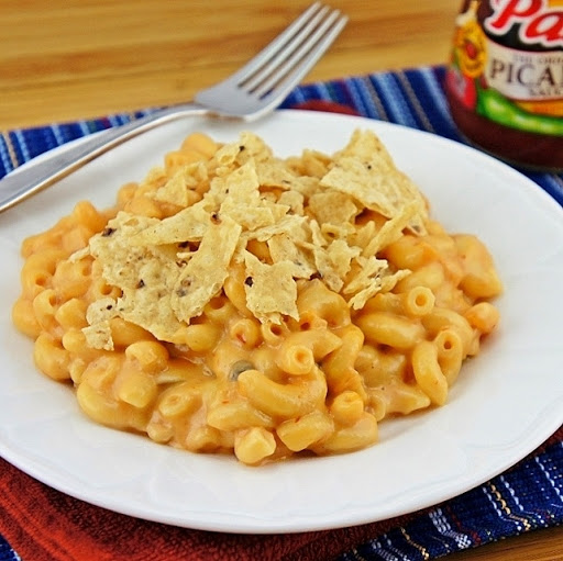1. Heat oven to 400. Stir the soup, milk, picante sauce, cheese and cooked pasta in a 3-quart shallow baking dish.