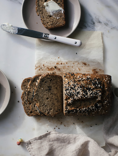 To make the bread: Preheat the oven to 350 F. Butter and flour an 8 1/2 x 4 1/2 inch loaf pan. (A 9x5-inch loaf pan will work too but the loaf will be a bit stouter in shape!)
