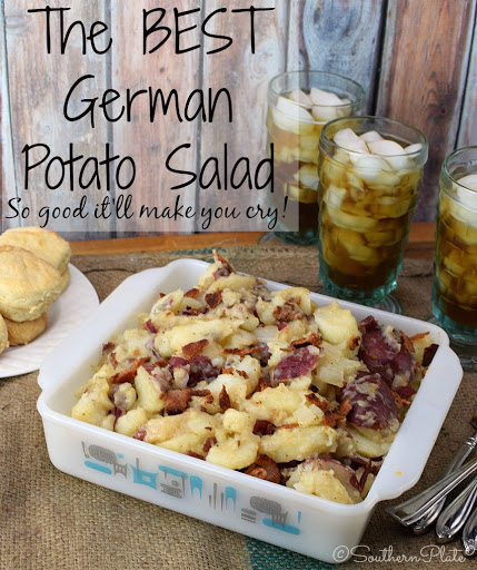 Saute onions in bacon grease over medium heat until tender. Remove skillet from heat. Stir in water, vinegar, sugar, and flour. Salt and pepper to taste (I start with 1 tsp salt, 1 tsp pepper). Return to heat and bring just to a boil while stirring constantly. Boil for one minute, while still stirring. Remove from heat and pour over potatoes. Carefully stir until well coated. Serve warm or cold.