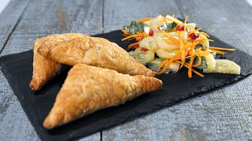 Roll out dough onto flat work surface. Cut dough into 8 squares. Spoon 2 tablespoons of beef mixture on the wide end of each square. Bring the corners together, creating a triangle. Place filled puffs on ungreased baking sheets, 2-inches apart. Bake for 15 minutes, until golden brown. Allow to cool for 10 minutes on sheet tray before serving.