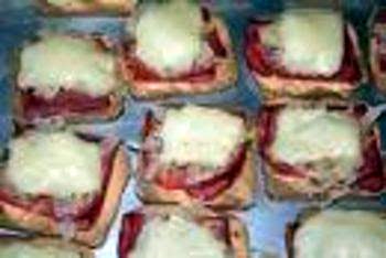 Preheat the oven's broiler. Arrange cocktail rye slices on a baking sheet. Top each one with about 2 teaspoons of thousand island salad dressing, then fold about 1/2 slice of corned beef to fit the bread, and lay over the dressing. Place a small amount of sauerkraut over the meat, then top with 1/4 slice of the Swiss cheese, or a slice about as big as the bread. Broil for 3 to 5 minutes, until cheese is melted. Serve warm.