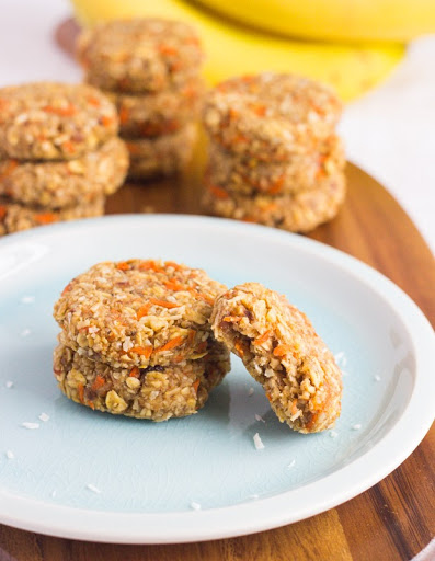 Scoop heaping tablespoon sized portions out and shape into 16 balls. Arrange each a few inches apart on the cookie sheet and then gently flatten each one with your hand. Bake in the oven for 10-12 minutes then remove and allow to cool for at least an hour so that they have time to firm up. Store in an airtight container for up to 5 days.