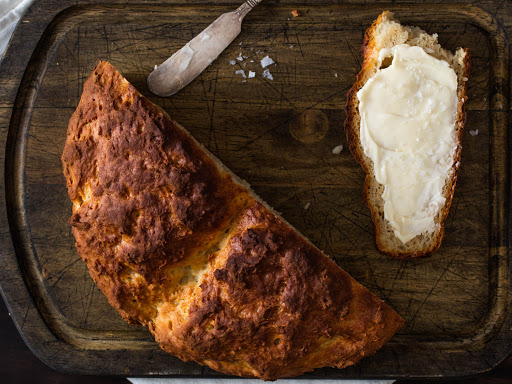 Once upon a time, soda bread was baked over hot coals in a covered skillet, trapping steam from the dough to produce a wonderfully crusty loaf of bread—a setup anyone can re-create in a Dutch oven. Teamed up with low-protein all-purpose flour and volatile baking soda, buttermilk hits the sweet spot of gluten and carbon dioxide formation, creating a moist and fluffy loaf of soda bread that's chewy and crusty all at once.
