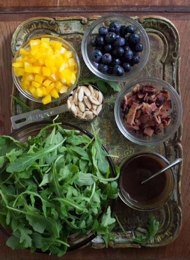 CHICKEN****Arugula, Blueberry and Bacon Salad with Almonds and Balsamic Vinaigrette
