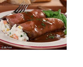In a large deep skillet, combine gravy and water over medium heat until bubbly. Add beef rolls seam-side down, cover, and simmer 10 to 15 minutes, or until heated through. Serve with gravy spooned over top of rollups.