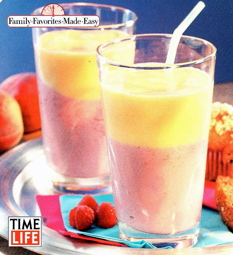 This eye catching, bi color shake makes a whole some snack or even a great, quick breakfast. Garnish the rim of the glass with a wedge of fresh fruit or a sprig of mint for a special added touch.