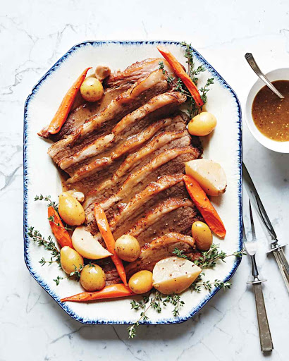 Flip meat over; add vegetables. Cover and continue to cook until everything is very tender, about 45 minutes. (If you're saving it for the next day, let cool, then cover and refrigerate overnight. Reheat, covered, in a 350 degrees oven until warmed through, about 40 minutes.)
