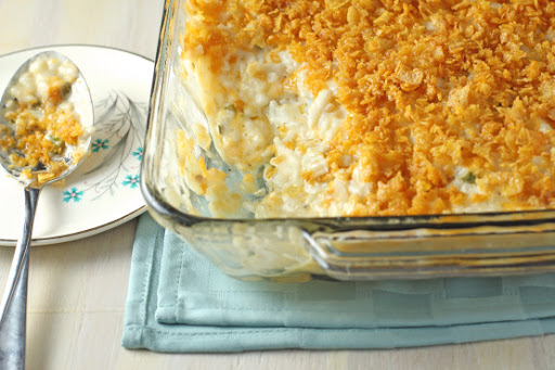 Combine cornflakes and butter, and sprinkle evenly over top of casserole.