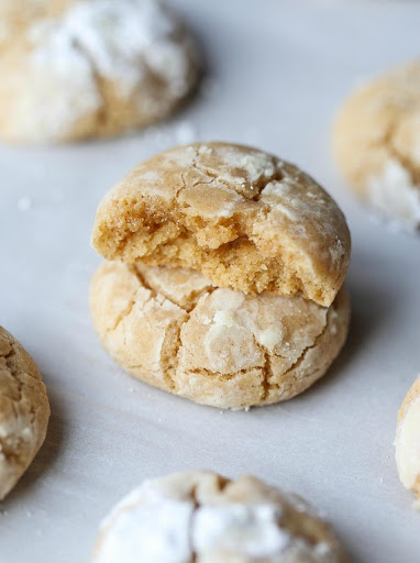Place the powdered sugar in a shallow bowl. Divide the chilled dough into 1- tablespoon sized balls. Roll each ball into the powdered sugar and place onto the prepared pan, about 2- inches apart.