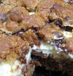 Pour cream cheese mixture over top and spread to edges of dish. Break the remaining dough into small pieces and sprinkle over top of cream cheese mixture.
