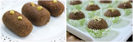 8.Form the mixture into the shape of a potato and add a few "sprouts" by using walnuts. I prefer making these into simple round balls and garnishing with some toasted ground nuts. If you're shaping them into the traditional shape, you will need to use about 3 Tablespoons of the mixture for each one, or 1 heaping Tablespoon for the smaller round balls.