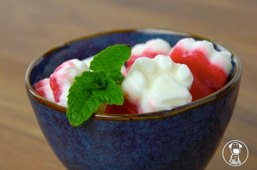Remove frozen paws from the freezer and top each with the strawberry puree. Return to the freezer for another hour.