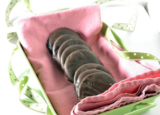 Preheat oven to 350 degrees. In a large bowl, mix together almond flour, arrowroot flour, cocoa powder, egg, butter, vanilla, peppermint extract, salt and maple syrup or honey. Roll the dough into a ball, wrap it in parchment paper and refrigerate for 30 to 45 minutes. Once dough is chilled, place it on the counter with a second sheet of parchment paper over it and roll it out to about 1/8-inch thick. Use a cookie cutter or bottom of glass to cut the cookies into round shapes and place on a lined baking sheet. Bake for 15 minutes or until crispy. Remove cookies from oven and let cool completely. Meanwhile, melt chocolate in top of a double boiler and stir in peppermint extract. Dip cookies into melted chocolate and place on parchment paper-lined cooking sheet. Refrigerate until chocolate is set and store in freezer.