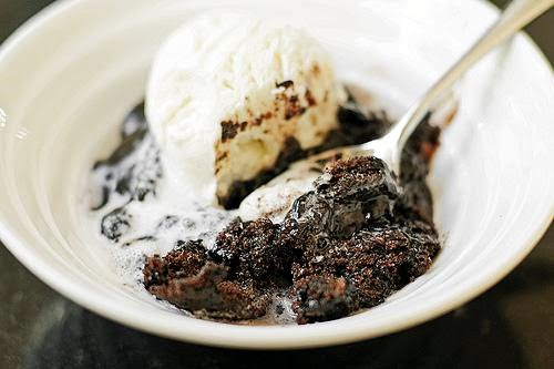 Let stand for a few minutes if you can hold yourself back. Serve with homemade ice cream using the gooey sauce to spoon over all.
