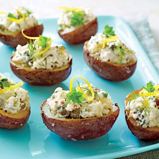 3. Stir together potato pulp, sour cream, capers, parsley, dill, mustard, zest, and remaining 1/2 teaspoon salt. Spoon mixture generously into each potato shell.