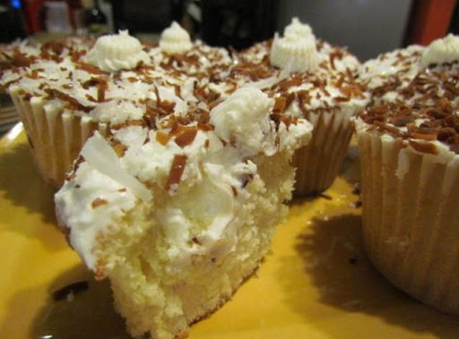 Mix your toasted coconut with the flaked and turn over the cupcakes on the coconut.