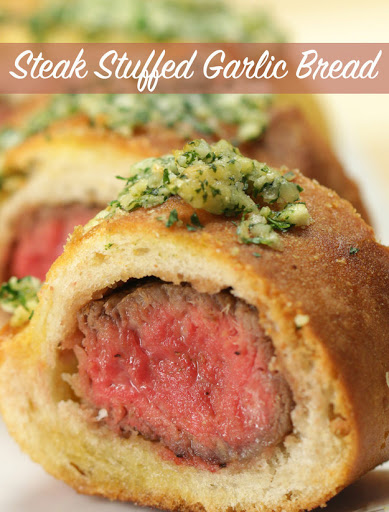 Slices into one inch bites and serve!Sink your eyes into your computer screen, because you’re likely to want to make this later tonight. Garlic bread and steak, are you kidding me?