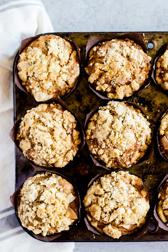 Top each of the muffins with the crumb topping. You may have some crumb topping left over, store in the refrigerator up to a week, or in the freezer for a few months.