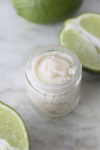 Dab a small amount of the finished scrub on your index finger and gently rub in a circular motion on the lips. Allow to sit for a few minutes and rinse off with warm water or wipe off with a warm wash cloth. Pat dry and apply your favorite homemade lip balm or naturally tinted lip gloss. Enjoy!