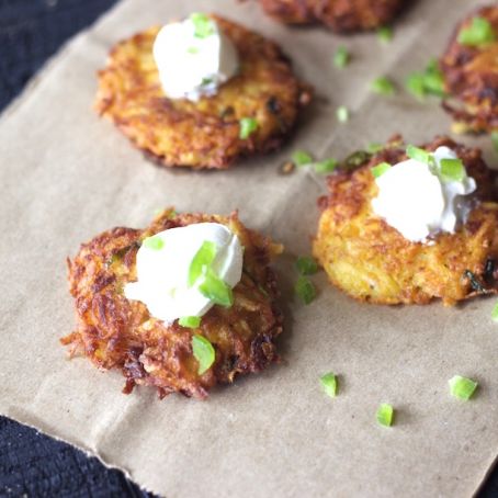 Sweet Potato Cakes with Smoked Black Cod & Dill Cream