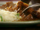 Remove the pot from the oven, transfer the meat to a cutting board and tent with foil to keep it warm. Let the mushrooms and onions stand several minutes undisturbed to allow some of the beef fat to rise to the surface. With a large spoon, skim off the excess fat and discard. With a ladle, add about 1 1/2 cups of the mushrooms and onions with some cooking liquid to the bowl of a blender or food processor. Carefully puree the mixture until very smooth. Pour the puree back into the pot and stir very well until combined; taste and adjust seasoning.