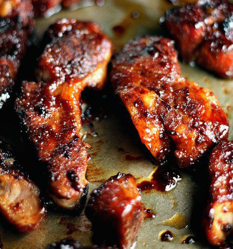 For Spare Ribs – Preheat oven to 425 degrees. Place spare ribs in a baking dish, double the recipe for the sauce, pour half the sauce over the spare ribs, cover with foil, bake for 1 hour covered or until spare ribs are tender, drain the liquid from the pan. Pour the other half of the sauce over the spare ribs, bake uncovered for 30 minutes. Keep your eye on the pork the last 30 minutes, they brown quickly, turn them over to finish the baking time.