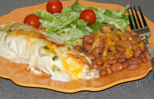 Spoon or pour the sauce over the enchiladas. Top with remaining half of cheese. Top with green onions if desired, or wait and garnish at serving time.