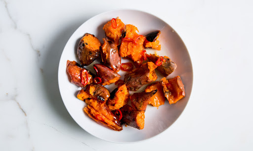 Twice-Roasted Sweet Potatoes with Hot Honey
