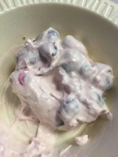 2. Fold in fruit of your choice (grapes, blueberries, raspberries, strawberries, pears, etc)