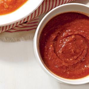 Sauté shallots in hot oil in a large skillet over medium heat 1 minute. Add garlic, and sauté 1 minute. Add wine, and cook, stirring often, 3 minutes or until reduced to about half. Stir in tomato sauce and red pepper; add salt to taste. Bring to a simmer; cook 5 minutes. Stir in cooked pasta and basil. Serve immediately with Parmesan.
