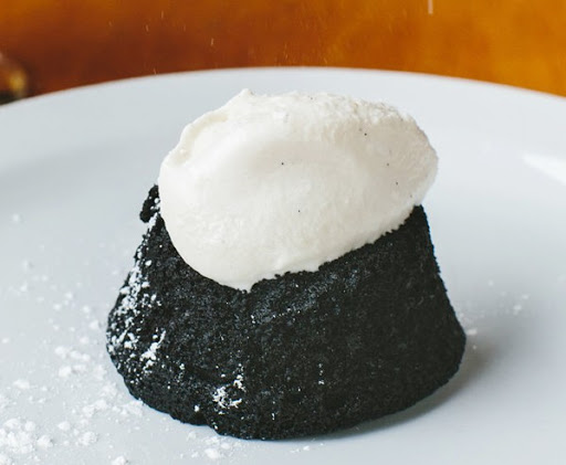 For dessert, Haseler transforms brownie à la mode into a grown-up dessert inspired by the Irish Car Bomb, the popular cocktail made by spiking a pint of Guinness with Bailey’s and Irish whiskey. Her miniature cakes are served warm, topped with boozy Bailey’s ice cream. “And it wouldn’t hurt to have a shot of Jameson on the side.”