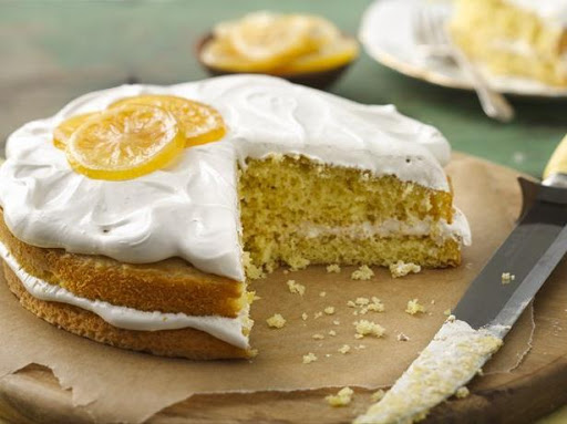 For a fun twist, try topping the cake with candied lemon slices: In 2-quart saucepan, heat 2 inches water to boiling. Cut a lemon into 8 thin slices; remove seeds. Boil slices in water 1 minute; immediately remove slices and place in bowl filled with ice water. Let stand 1 minute; drain. In 8-inch skillet, heat 1 cup sugar and 1 cup water to simmering over medium heat; place slices in single layer on syrup mixture. Simmer (do not boil) about 45 minutes or until white part of peel is translucent. On cookie sheet lined with cooking parchment paper, place slices; let stand about 20 minutes or until cool.