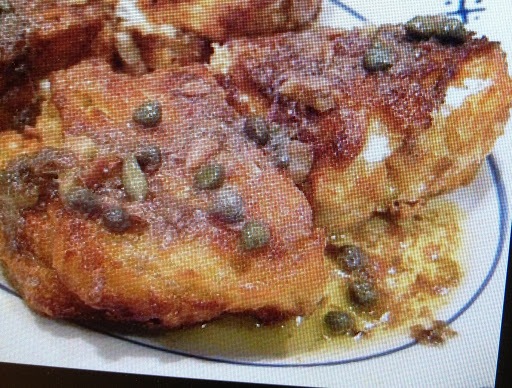 Dredge each sandwich in flour and shake off the excess. Dip each sandwich generously in the egg/and cheese mixture. Work in batches, do this process to each sandwich just before frying, it's not a good idea to flour and dip ahead of time. Secure each sandwich with toothpicks. Put the first sandwich in the hot oil. Remove the toothpicks to turn and insert the toothpicks in the second side. When each sandwich is nice and brown on both sides, remove it from the oil and blot it on paper towels. Put it on a sheet tray with a rack and keep warm in the preheated oven. Repeat this process with each of the sandwiches.