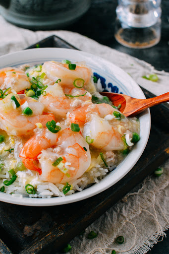 Spread the slightly beaten egg and scallion across the mixture and let simmer for 5 seconds. Use your spatula to fold the egg into the sauce with a few strokes. Serve over white rice.