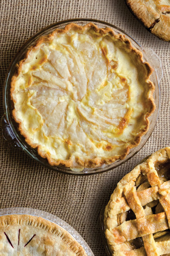 2. Heat oven to 400°. Fan half the pears evenly over dough. Sprinkle half each of sugar and flour over pears and drizzle with half the cream. Repeat with remaining pears, sugar, flour, and cream. Bake until crust is golden and filling is set, about 1 hour. Let cool completely before serving.
