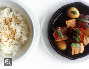 THIS IS NOT THE CHICKEN BREAST PICTURE - BUT A PORK AND RICE PICTURE. Restaurant in NYC is Nightingale 9.