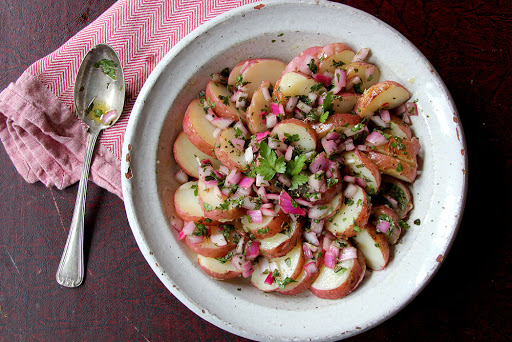 Tender grilled red-skinned potatoes are doused in herb vinaigrette in this warm salad.
