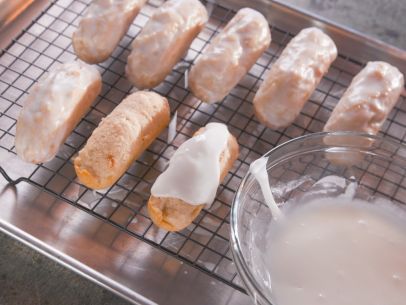 For the doughnuts: Preheat the oven to 375 degrees F. Spray two 6-well eclair pans with nonstick spray.