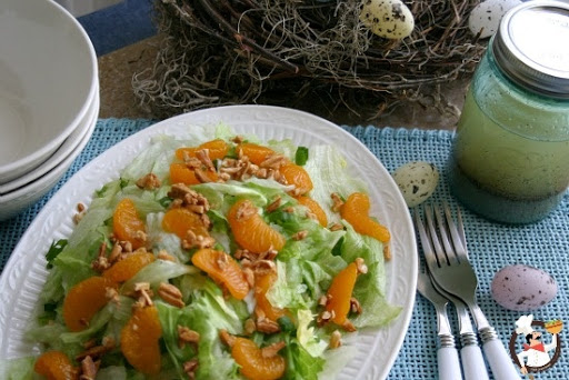 Mix Salad ingredients together and put into large serving bowl. Put on the amount of Dressing desired and toss to coat. Sprinkle on nuts & serve.