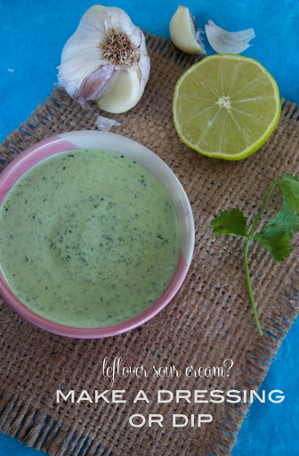 When a recipe calls for a small amount of sour cream I feel my shoulders slump. For me the thought of having to buy a container of sour cream for 2 tablespoons or even a cup seems like a such a waste; there’s always some leftover. I could substitute it for yogurt but I would be in the same dilemma. And then it occurred to me. Why not make a dressing or dip? It would also make good use of the coriander (cilantro) I had in the fridge.