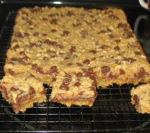 STIR together reserved crumb mixture and chocolate chips. Sprinkle evenly over peanut butter layer.
