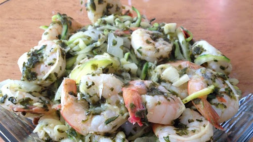 Heat 2 tablespoons butter in the same skillet; cook and stir shrimp and minced garlic until shrimp are just pink, 3 to 4 minutes. Add spinach, lemon juice, red pepper flakes, 1/2 teaspoon salt, and pepper; cook and stir until spinach begins to wilt, 3 to 4 minutes. Add zoodle mixture; cook and stir until heated through, 2 to 3 minutes.