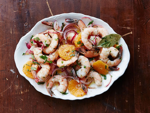Bittersweet satsumas, a citrus fruit native to Louisiana, brighten these pickled shrimp, which chef Justin Devillier of New Orleans' La Petite Grocery spikes with Korean chile flakes. Substitute tangerines or any orange-related citrus and crushed red chile flakes, if necessary.