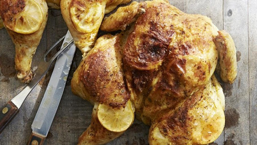 Combine salt, tarragon, paprika, and pepper in a small bowl. Stir in oil. Run your fingers under chicken skin and rub tarragon paste under skin. Slide lemon slices under skin, in a single layer.